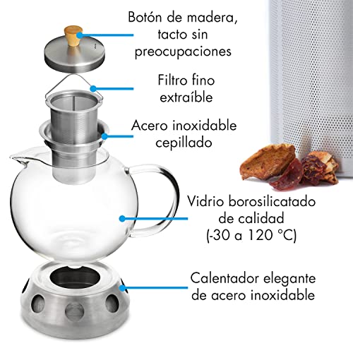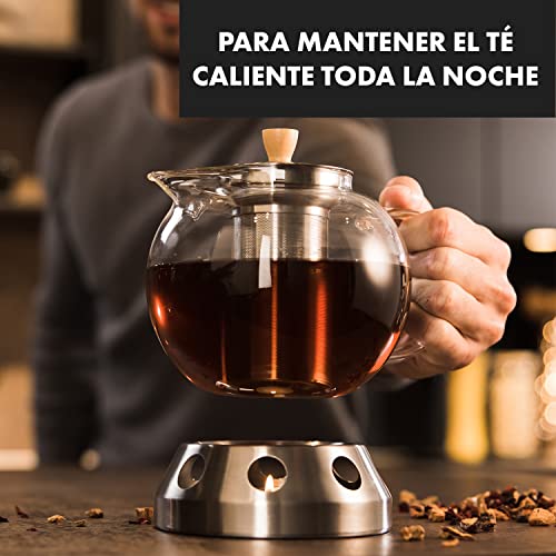 GLASWERK – Tetera Cristal con Infusor Té (1,3L), con Calentador – Tetera con Filtro de Acero Inoxidable, Infusionador de…