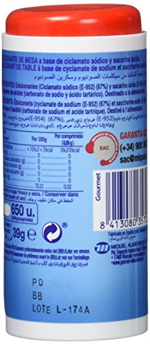 EDULCORANTES (CICLAMATO SÓDICO (E-952II) Y SACARINA (E-954I)), REGULADORES DE ACIDEZ (CARBONATO DE SODIO (E-500II) Y ÁCIDO TARTÁRICO (E-334))