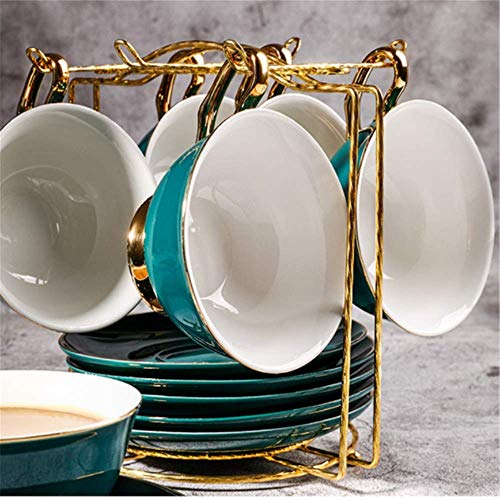 PAQUETE: Una cafetera, 6 tazas de café, 6 platillos, 6 cucharas, Los productos de cerámica están empaquetados con espuma y cajas a prueba de golpes para evitar roturas durante el mudanza a largo plazo.