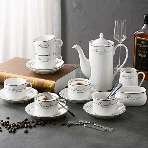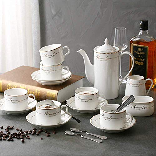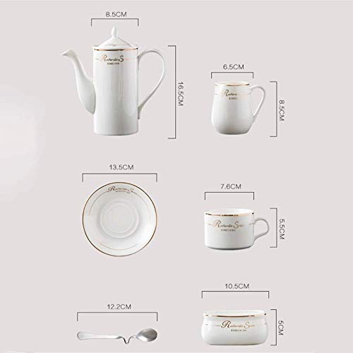 PAQUETE: Una cafetera, 6 tazas de café, 6 platillos, 6 cucharas, 1 tanque de leche, 1 azucarero; Los productos cerámicos se empaquetan con espuma y cajas a prueba de golpes para evitar roturas durante el traslado a largo plazo.