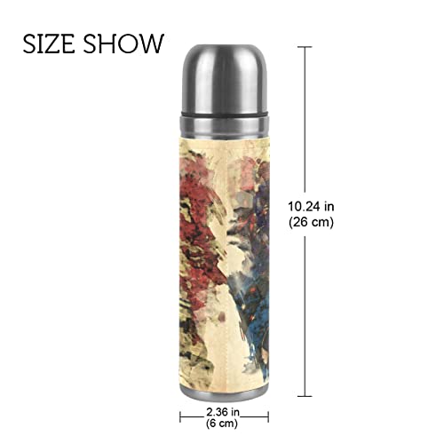 Material: la taza térmica está hecha de arma blanca inoxidable 304 de grado alimenticio, tanque interior al vacío, con conservación del entusiasmo y efecto de conservación del frío. Con estampado único y fresco envuelto en piel (extraíble). La tapa de la taza está hecha de polipropileno y junta de silicona. Seguro y saludable de grado alimenticio.