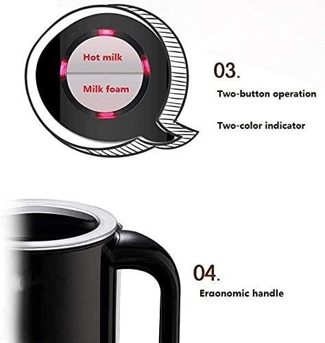 ★ EXCELENTE LECHE ADEMÁS: Adoptando la tecnología de generalización, este espumador de leche crea una espuma de leche espesa y fina con poco ruido en minutos; Es conveniente y fácil abocar la espuma densa.