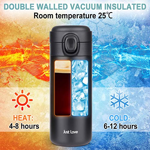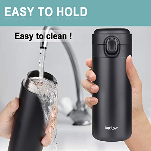 Taza de café de acero inoxidable de doble pared: Hecha de acero inoxidable 18/8 de grado alimenticio sin contaminación que evita el aumento de bacterias, la taza térmica de doble pared es absolutamente irrompible y por lo tanto adecuada para todas las actividades en interiores y exteriores. Además, taza de viaje con tapa a prueba de fugas y sin BPA.