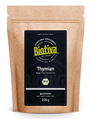 Biotiva Hierba de tomillo orgánico 200 g – tomillo cortado – Thymus vulgaris – sin sustancias disociadoras – llenado y verificado en Alemania (DE-ÃKO-005)