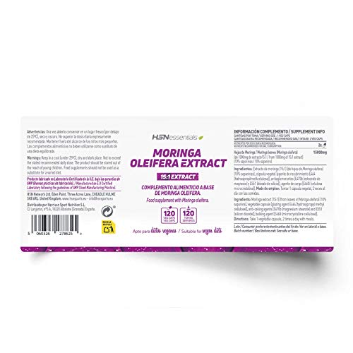 Moringa Oleifera 7500 MG de HSN | 120 Cápsulas Vegetales Extracto Hojas de Moringa oleifera y 10% Saponinas por Dosis…
