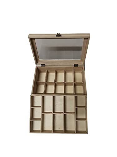 Caja de Madera y Metacrilato 22 Compartimentos y dos Alturas, con Cierre y Bisagra Metalica
