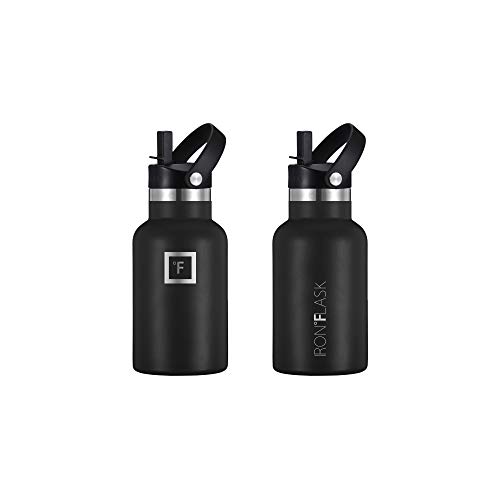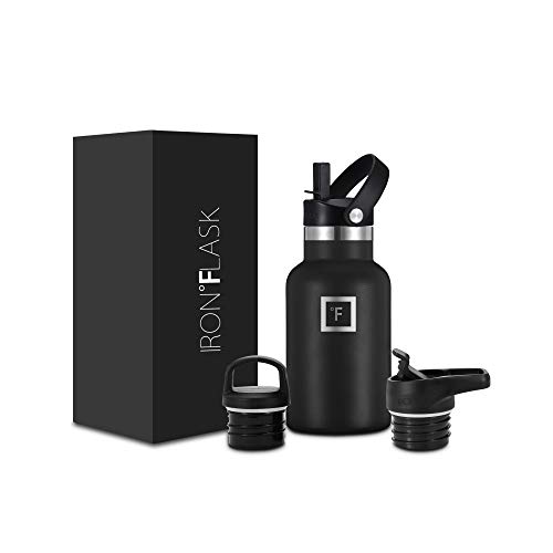 IRON °FLASK Botella de Agua para Deportes de Boca Estrecha – 12 oz, 3 Tapas (Tapa de Paja), Acero Inoxidable con…