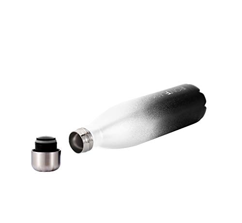 Diseño funcional: El destruido afuera de recubrimiento en polvo es un purista. Te garantiza que llamarás la atención con esta elegante y duradera botella de agua. Nuestro logotipo está grabado con láser para asir la más alta calidad.