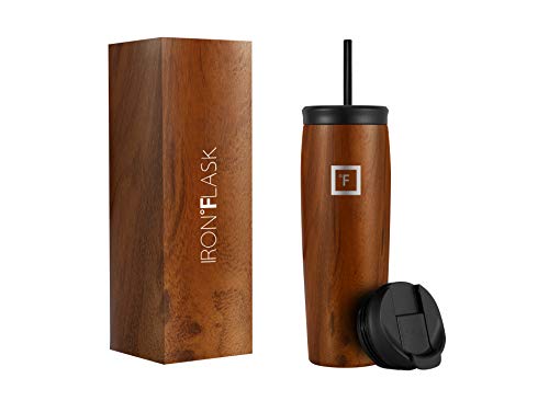 IRON °FLASK Vaso Nomad – 24 oz, 2 Tapas (Pajita/abatible), Botella de Acero Inoxidable aislada al vacío, Moderna Pared…