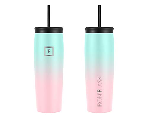 IRON °FLASK Vaso Nomad – 24 oz, 2 Tapas (Pajita/abatible), Botella de Acero Inoxidable aislada al vacío, Moderno de…