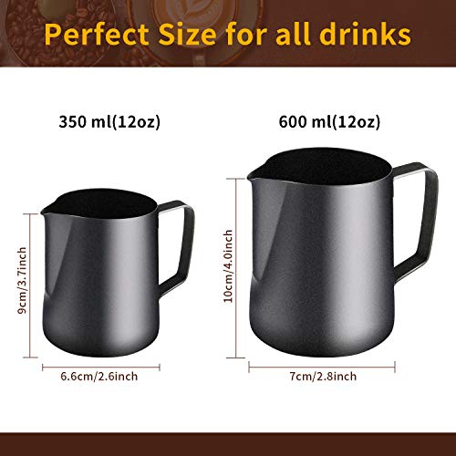 Jarritas para leche, TechKen jarra leche barista acero inoxidable negro para Café y Latte Art con marca de escala 350ML…