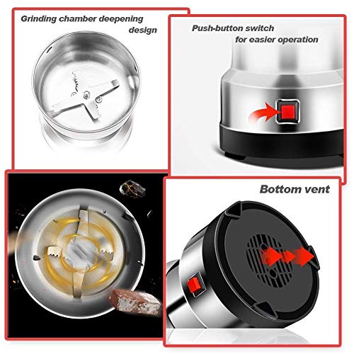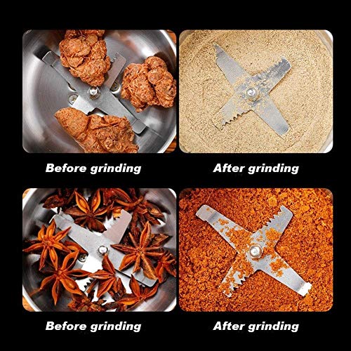 ACERO INOXIDABLE: Cabezal de corte de hoja inoxidable de grado alimenticio para una molienda rápida y uniforme. Muy adecuado para controlar la rugosidad a la finura de los granos de café en pocos segundos. Muchas hierbas medicinales chinas necesitan evitar el hierro.