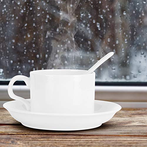 ? 【ESTE JUEGO AHORRA MUCHO ESPACIO】 – Juego de taza / platillo de porcelana con una rejilla apilable adicional para mantener el juego unido, ocupa el mismo espacio que un platillo. Es lo suficientemente compacto como para caber en el gabinete más pequeño o acaparar muy poco espacio en el mostrador (o mesa). Si ahorra espacio o tiene TOC compulsivo por mantener su apartamento limpio y ordenado, este es el aspecto impecable que desea.