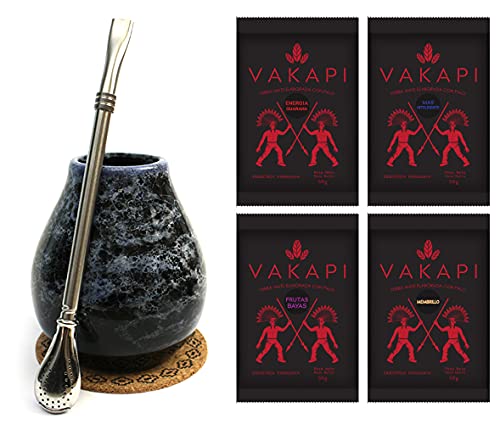 Contenido: el kit de inicio de té mate contiene todo lo que necesitas. Una elegante taza mate en estilo mármol, una bombilla de acero inoxidable y una muestra de té paraguayo Vakapi. Siente la fuerza de un golpe más fuerte