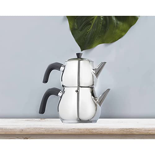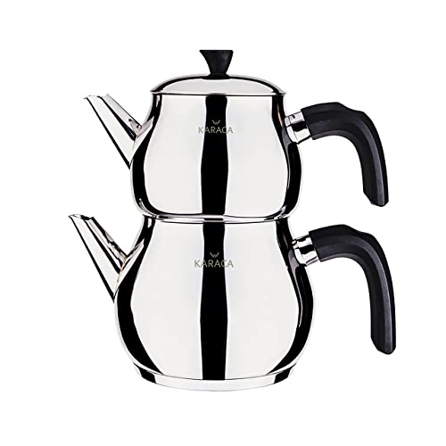 Karaca Kayra Juego de Tetera Negro, Tetera: 1 Litro, Hervidor 1,75 litros, Acero Inoxidable 18/10, Con Tamiz de Té, 2…