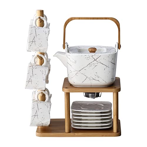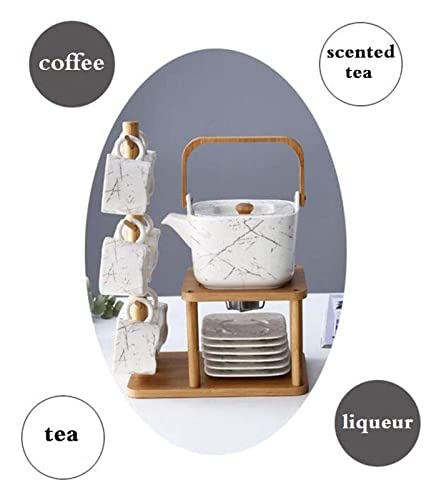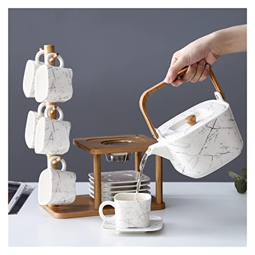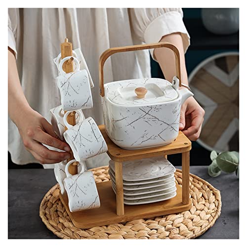 Copa de té y platillo Conjunto de 6: El paquete contiene: 6 tazas de café, 6 platos de café, 1 Apoyo de pantalla de madera, 1 tetera.