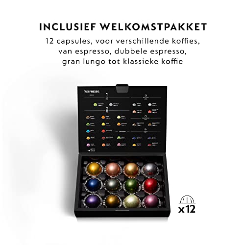 Cafetera espresso de cápsulas Vertuo de Nespresso de diseño moderno y compacto; gracias a su sistema elabora instantáneamente tazas de café grandes con espuma cremosa y nativo así como espressos tradicionales