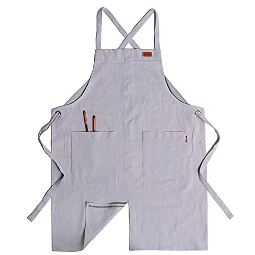 Delantal de cocina ajustable y receptivo: el diseño de espalda cruzada y la banda de algodón suave de este delantal pueden ayudar a prevenir el dolor de cuello. Las correas extra largas con hebillas de liberación rápida ofrecen espacio para una variedad de tamaños. Puede compasar la longitud para que se adapte a sus necesidades, suave y receptivo de trasladar este delantal.