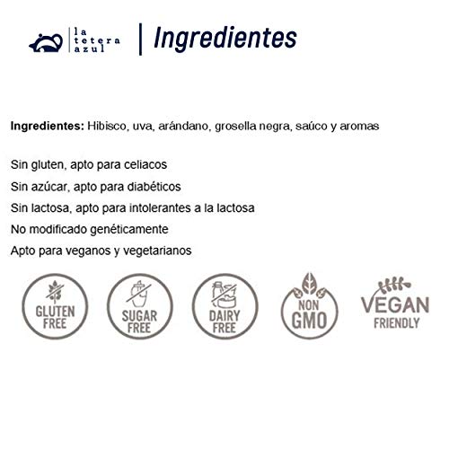LA TETERA AZUL Infusión De Frutos Del Bosque Premium. Hibisco, Uva, Arándano, Grosella Negra Y Saúco. Frutos Del Bosque Y Frutos Rojos. Bote A Granel De 140 Gramos Para 47 Infusiones.