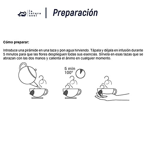 🌱 PREPARACIÓN: Introduce una piramide en una taza y pon agua hirviendo. Tápala y déjala en Agüita durante 5 minutos para que las flores desplieguen todas sus esencias. Sírvela en esas tazas que se abrazan con las dos manos y calienta el ánimo en cualquier momento.