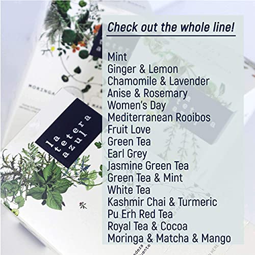 ☕️ FORMATO: Estuche de cartón con 20 pirámides de Agüita biodegradables, envueltas individualmente para que puedas pasmar con claridad todos los ingredientes que contiene.