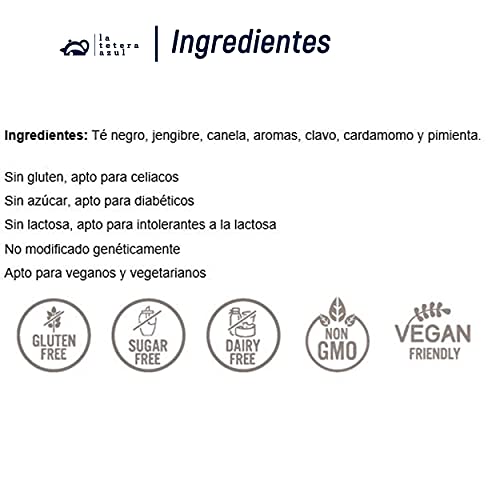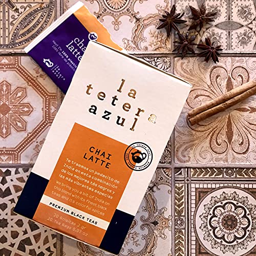 LA TETERA AZUL Té Negro Con Jengibre Y Canela. Infusión Baja En TeÃna. Té De Canela. Chai Latte. 20 Bolsitas De 2 Gramos.