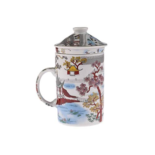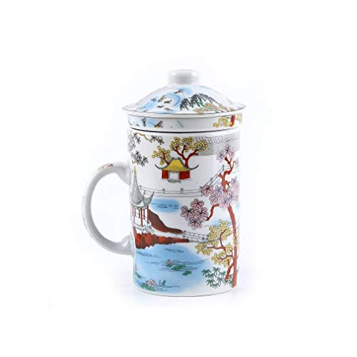Especial para tés o infusiones. Decoración oriental con motivo oriental de lago. La taza se compone de 3 elementos: taza, filtro y tapa. Perfecta para momentos de relajación en casa o en el trabajo acompañados de un té o una infusión. Fácil de usar, solo hay que colocar unos gramos de té o de plantas en el filtro y trasvasar el agua además tantas veces como quieras para que dure el sabor.