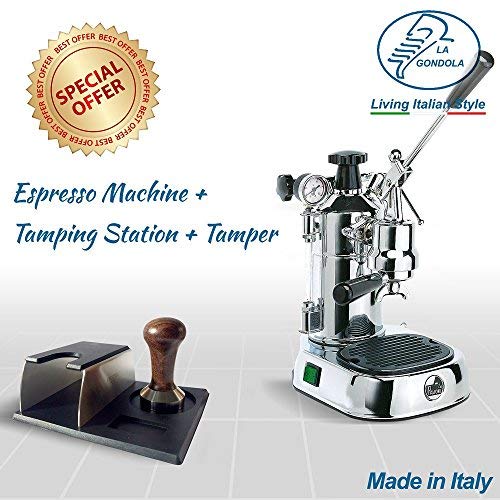LaGondola Bundle : Artilugio de café expreso cromada La Pavoni Professional con manómetro y prensa de metal Motta Abecé portafiltro y juego de 6 simpáticas tazas vasos de cristal Made in Italy