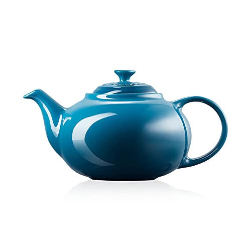 LE CREUSET Tetera Classic, Cerámica esmaltada, 1,3 L, Sirve 3-4 tazas, Azul Deep Teal,70702136420000