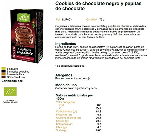 Crujientes y deliciosas cookies de chocolate y pepitas de chocolate, elaboradas con ingredientes 100% ecológicos y pensadas para los amantes del chocolate más general. Preparadas sin grasa de palma y sin huevo se presentan en un formato monodosis para llevarlas adonde quieras y asombrar de su sabor en cualquier momento del día. Fuente de pita.