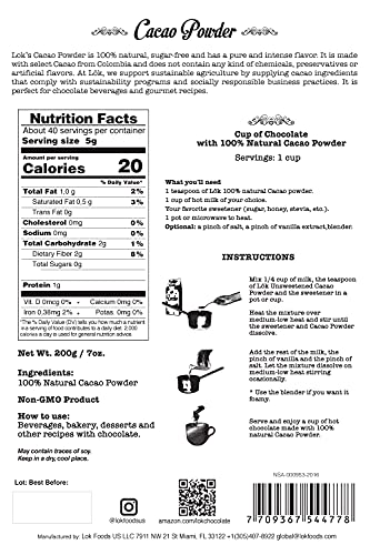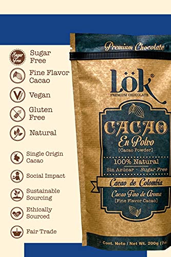 Lök Foods Single Origin ‘Sin Azúcar’ Cacao en Polvo, Cacao de Colombia, 200g