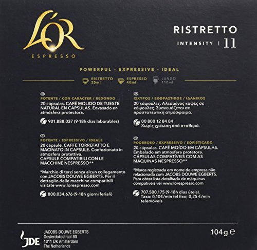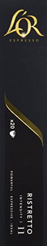 Café L’OR Espresso Ristretto 20 cápsulas, intensidad 11. Cápsulas de aluminio compatibles con cafeteras Nespresso.