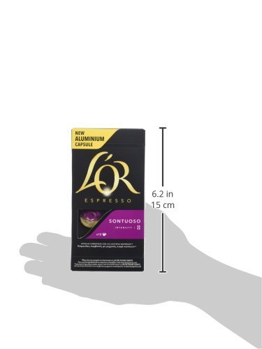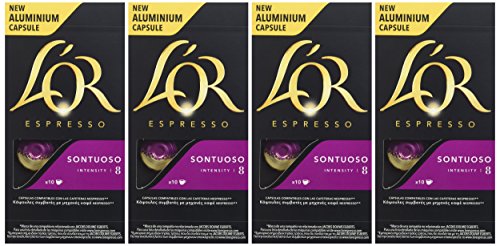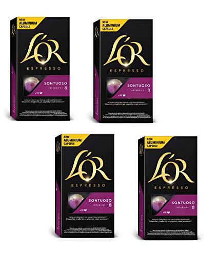 Café L’OR Espresso Sontuoso 10 cápsulas, intensidad 08. Cápsulas de aluminio compatibles con cafeteras Nespresso. 4 packs de 10 cápsulas cada uno.