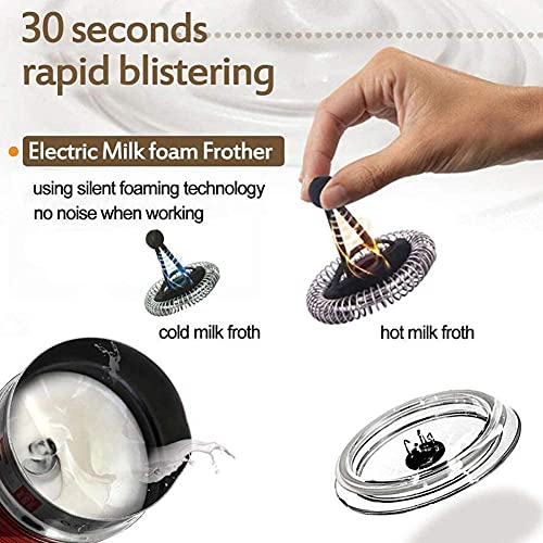 Espuma de leche espumosa: diseño para todos los amantes de la leche espumosa y el café. El espumador de leche automático tiene la textura suave y el sabor original de la leche espumosa y al vapor, calienta la leche fría a 65 Fahrenheit y obtén la espuma del nivel de barista dentro de 60 ~ 90S. Espumador de leche Proporciona la leche espumosa perfecta para arreglar café con leche, capuchino y chocolate caliente.