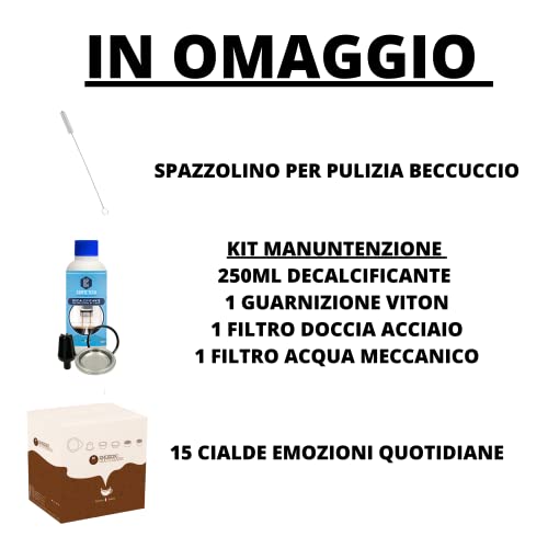 Estructura externa, incluyendo palancas, es totalmente cromada. Características Marco de metal pintado Cubiertas de ABS Frontal de espada inoxidable Balancín cromada Placa de rudimentos vista cromo Bomba 15 bar Intercambiador de aluminio con torpedo y presacialda ajustable de latón Cuajo: 500 w Termorregulador fijo 95°/145° RM Superficie del cisterna PET 1,4 Lt. Fuente de viandas: 220 V – 50 Hz. Dimensiones: 32 x 21 x 35 cm