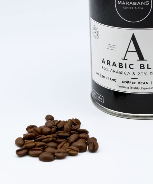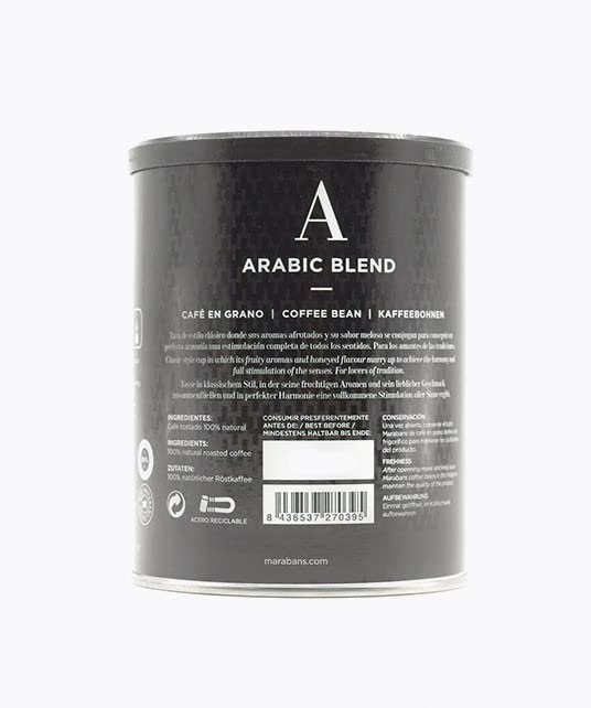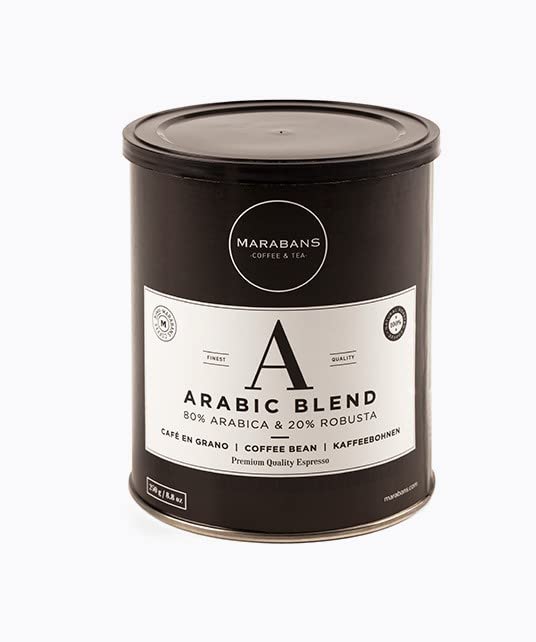 Café en grano Marabans Arabic Blend, 80% Arábica 20% robusta, bote 250 gramos, estilo clásico, con aromas afrutados y…