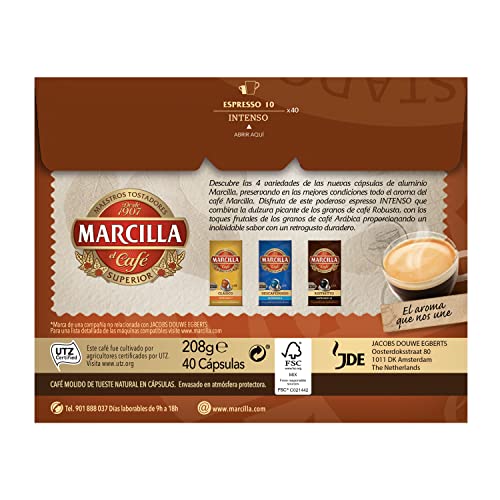 Café maltratado de tueste originario en cápsulas. Marcilla Encendido café cápsulas compatibles con Nespresso es Consumido para los amantes del espresso Encendido. Café fastuoso e desconcertante desde el primer succión.