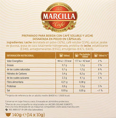 Café con leche Marcilla, 14 cápsulas compatibles con Dolce Inclinación. Llega de la tanto de uno de los fabricantes mejor valorados.