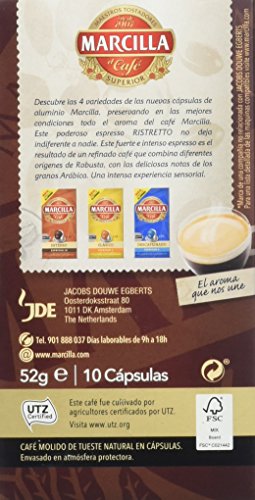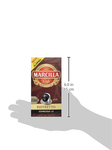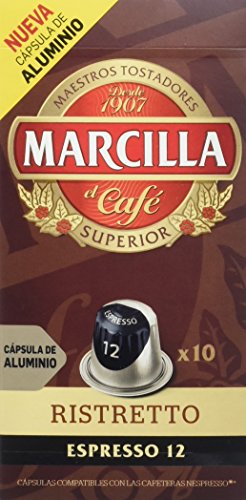 Café Marcilla Espresso Ristretto 10 cápsulas, intensidad 12. Cápsulas de aluminio compatibles con cafeteras Nespresso.