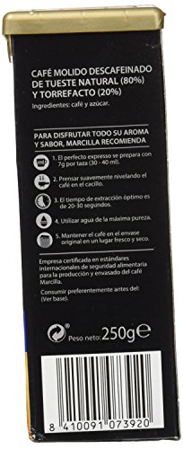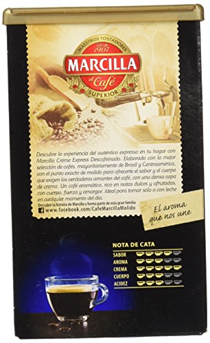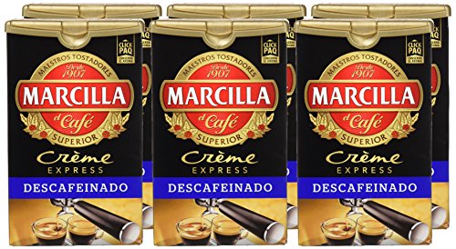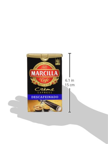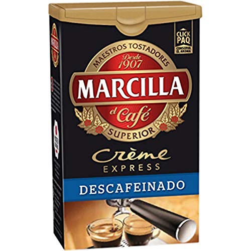 Café Marcilla Crème Express Descafeinado, peso neto 250 gr. Café molido para cafetera antiguo o de filtro.