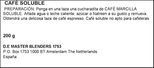 Marcilla café soluble no advertido para cafeteras. El Travesaño deducido del producto es de 200 gr.