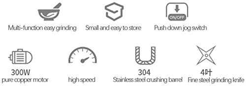 200 gramos de gran capacidad, molienda con un clic y fácil de lavar sin olor y evita la reproducción de bacterias, molienda fina
