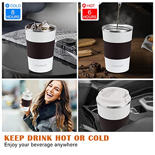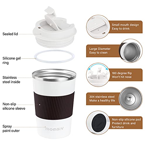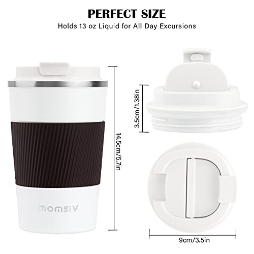 MOMSIV – Taza térmica (13 oz/380 ml, antideslizante, acero inoxidable, de doble pared, aislada, vacío, a prueba de fugas…