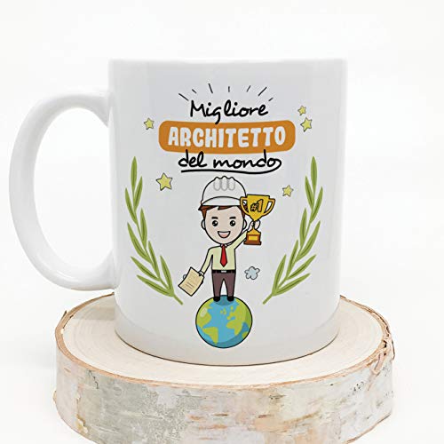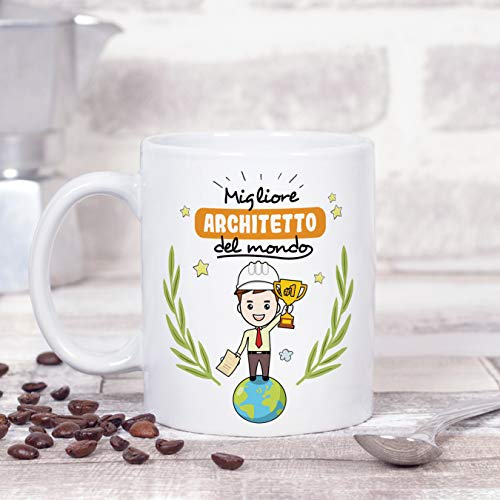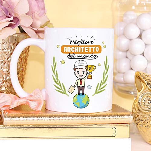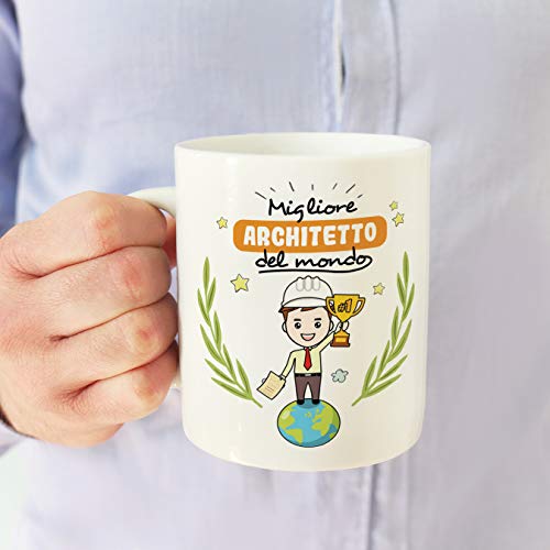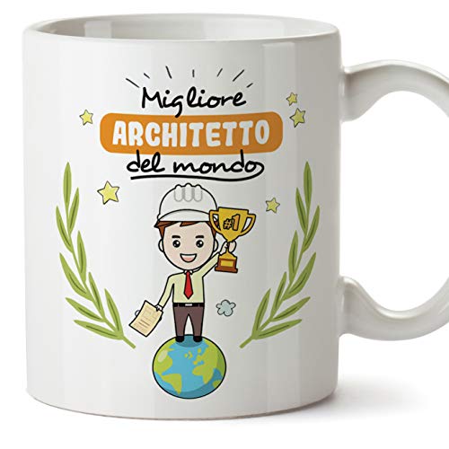 MUGFFINS (Taza en Italiano) Tazas Originales de café y Desayuno del Arquitecto para Regalar Trabajadores y Profesionales – el Mejor Arquitecto del Mundo – Cerámica 350 ml