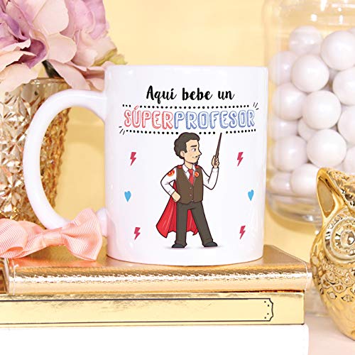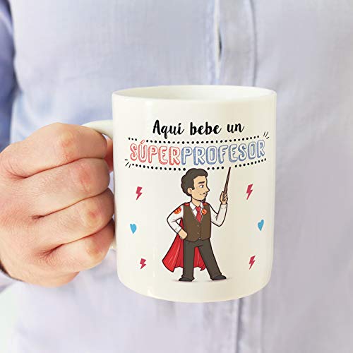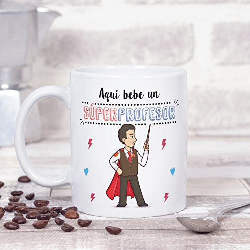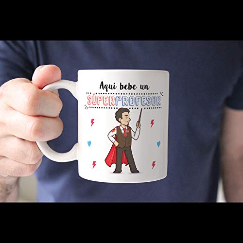 Ideal como regalo para hombres profesores y maestros: Tu súper profesor necesita pensar en sus alumnos favoritos todos los días. Pero… ¿no sabes cómo decirle «gracias profe» o «aprecio tu trabajo»? Bueno, ¿qué mejor manera que con una taza para el Mejor Profe del Mundo? Nuestras tazas para regalo son sinónimo de buen precio, mensajes divertidos, colores vivos y calidad. Un regalo original único e inolvidable, resistente al uso diario