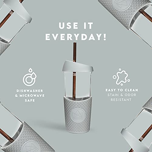 Las tazas de viaje Neon Kactus con pajitas son 100% libres de plástico y solo utilizan materiales totalmente reciclables. Nuestra funda térmica de diseño único y tapa a prueba de salpicaduras están hechas de silicona de júbilo alimenticio. Las tazas de batido de vidrio Neon Kactus están certificadas para estar libres de todos los productos químicos nocivos y toxinas.