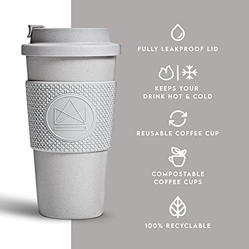 Neon Kactus – Taza de café reutilizable compostable, taza de café ecológica con tapa de vaso tipo tornillo y funda de…