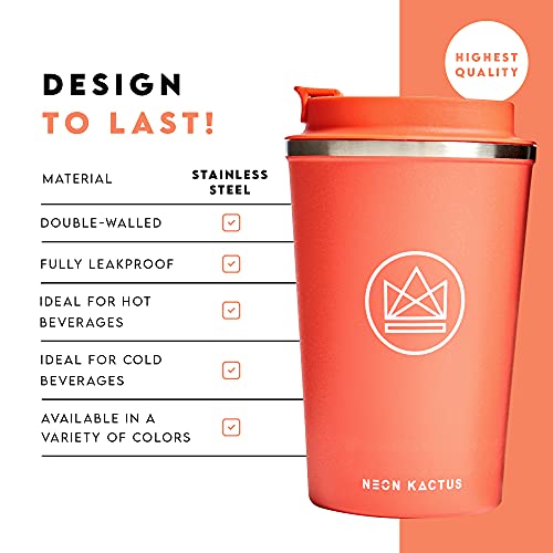 Mantiene la bebida caliente o fría: Los vasos isotérmicos Neon Kactus están fabricados con puñal inoxidable de alta calidad de calidad 304. Diseñados con tecnología de doble capa para mantener la superficie exterior fría al éxito y tu bebida en el entrañas a la temperatura perfecta: caliente durante 6 horas y fría durante 12 horas.