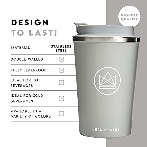Mantiene la bebida caliente o fría: Los vasos isotérmicos Neon Kactus están fabricados con acero inoxidable de alta calidad de calidad 304. Diseñados con tecnología de doble capa para mantener la superficie exterior fría al tacto y tu bebida en el interior a la temperatura perfecta: caliente durante 6 horas y fría durante 12 horas.