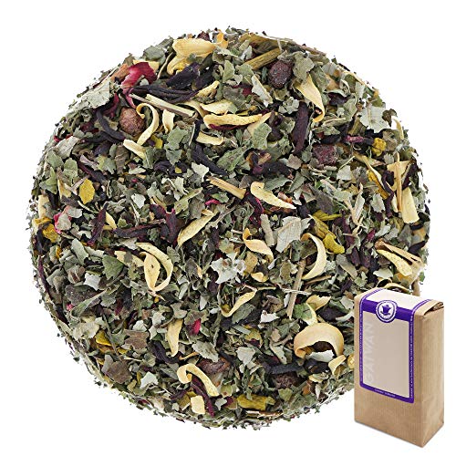 Ingredientes: hibisco¹, hojas de zarzamora, bayas de vallado, muérdago, Melissa¹, azahar, bayas del saúco¹, trizas de ananá y papaya azucaradas, menta¹. Ingredientes¹ de la tarea ecológica.